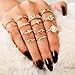 KNUCKLE RINGS FOR WOMEN:You will get a set of shinny gold crystal knuckle rings. This set has 16 different styles of rings, including moon ring, star ring, knot ring, heart ring water drop ring and more. You can choose to wear it alone or stack it.It's a great choice to match different everyday looks.