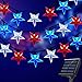 【50LED 4th of July Lights】 50 led beads, red white and blue star shaped, Solar Powered, 8 Modes and Waterproof, 30.6Ft total length, 6.5ft lead wire, 4.9 Inch distance between stars. Star size:1.4Inch/3.5cm