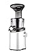 JUICER: Top Selling Hurom HU-100 Masticating Slow Juicer in Silver with Juice Cap for Drip-Free Pouring and Mixed Beverages.