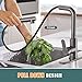 👏FLEXIBLE OPERATION: Kitchen faucet with pull down sprayer has 3 spray setting modes(Stream,Spray,Pause), easily switches between splash-free water flow and spray rinse. 90° right-angle design kitchen faucets with 360° swivel spout and 17.2-inch retractable hose, provides full range kitchen sink coverage and accessibility. Unique drop-shaped design single handle of kitchen sink faucet for easy control of hot/cold water and flow.