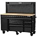 SOLID-WOOD TOP - Work with confidence on a 1" thick solid wood surface finished in scratch resistant polyurethane. Designed for heavy-duty to accommodate power tools, mounts and clamps safely.