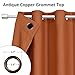 HUTO Curtains: Set includes 2 black out curtains of 42" wide x 84" long with 6 antique copper grommets top each,inner diameter of grommet is 1.6", fit well with standard or decorative curtain rods. Quality fabric without liner feels soft, thick and heavy.