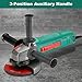 ⚒︎【Comfortable】 The powerful angle grinder offers a 3-position auxiliary handle (left, right and up) that is ergonomic for better control and comfort in any cutting and grinding application.