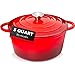 Suitable for Gifts: Safe for cooking with PFOA and PTFE-free cooking 5 quart pot with lid. Cast iron pots make great as a serving pan. The heat retention system of 5 qt Dutch oven ensures food will stay warm. This enameled Dutch oven is the perfect gift for family and friends who loves cooking on any occasion such as birthday, Christmas, anniversary, and Thanksgiving Day.
