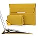 Multiple Protection: The outermost layer is made of faux suede leather, which is tear resistant, dirt resistant and water resistant. The middle layer is embedded with soft non-woven fabric that provides shock absorption for your laptop. The lining is soft, delicate and flexible, protecting your laptop from scratches when you take it out or put it in the sleeve. Hidden magnets closure and trapezoidal opening allow you to access your laptop quickly while your laptop won't be damaged by the magnets