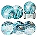 Coaster With Metal Holder Set: the set includes 6 round ceramic coasters (Marble Surface Pattern, 4 inch) and a 4.5-inch black metal coaster holder.
