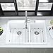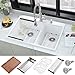 【Noise Cessation】The white workstation sink thick stone-like material engineered to eliminate vibration and noise when sink is in use to muffle the tinny sounds of running water or echo of dropped dishware, never bothering your conversation with your family.