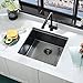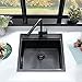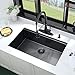 【Easy To Clean & Fast Drainage】 The contemporary styling with R10 radius corners make this black stainless steel kitchen sink easy to clean. A rear-set drain ensures optimal drainage, while 4 drain grooves on the sloped bottom of the sink help direct water to the drain, for a clean and quick-drying sink.