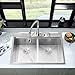 【Large Kitchen Sink For Largest Space】33 inch double bowl kitchen sinks with integrated ledge that allows you to slide custom accessories across the workstation sink maximize bowl size and offer more usable space in the double kitchen sink, allowing large items like baking sheets to lie flat for easy clean up.