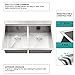 【Easy To Clean & Fast Drainage】The contemporary styling with radius corners make this double bowl undermount kitchen sink easy to clean. A rear-set drain ensures optimal drainage, while 4 drain grooves on the sloped bottom of the sink help direct water to the drain, for a clean and quick-drying under mount sink.