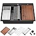 【Workstation Sink For Largest Space】Undermount kitchen sink workstation with integrated ledge that allows you to slide custom accessories across the sink maximize bowl size and offer more usable space in the sink, allowing large items like baking sheets to lie flat for easy clean up.