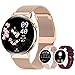 SMART WATCHES FOR WOMEN: 1.32" 360*360 pixel round full touch color screen covered with gold metal frame. The smartwatch includes 4 default dials, and there are 200+ free watchface in the APP to change. You can also upload any picture, such as your family or pets to create your personalized dial. 1 Smart watch body comes with 3 bands, the rose gold stainless steel one is exquisite, while the pink and burgundy silicone bands are more casual, switch between elegant and sporty to match your dress.