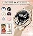 SMART WATCHES FOR WOMEN: Classic round smartwatch, 1.32" full touch screen covered with a zircon metal frame, exquisite craf. The women smart watch contains 150+ free dials available to choose from. You can choose your favorite picture or photo to show your personalized style. It can be any photo, such as your family, pet ,etc. Comes with 3 bands, the rose gold stainless steel one is exquisite, while the pink and burgundy silicone bands are more casual, so you can wear it with any outfit!
