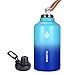 One-hand Use: The leak-proof screw cap is accessible with one hand; upgraded 1 inch wide handle enhances the comfort and portability of using the jug; ice filling and bottle grabbing are made easy with the wide-mouth 4.33 inch lid and BUZIO powder-coat sweat-free technology