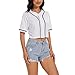 V-neck and short sleeve full button closure,Loose fit classic contrast color and crop top design,can show your slim and perfect figure.