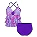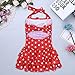 Polka dots ruched swimwear with 3 tiered ruffled hem. Comfortable and breathable fabric, quick dry. Only Tag XXL and 3XL have removable chest pads