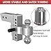 ADJUSTABLE BALL MOUNT: Universal for all standard 2" trailer hitch receivers, the truck hitch enables precise and rapid 4'' drop/rise, and adjustable height lets you tow trailers of different heights with the same vehicle.