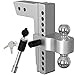 Double Security Locks Anti-theft: Our tow hitch came with two safe lock pins, one to use for adjusting the ball up and down, and the other to go through your hitch receiver on your vehicle and hold the hitch on. Double pin locks are secured in place to provide stability and safety. The all-weather waterproof cap keeps the keyhole away from moisture, dust and rust, ensures locking is safe and protects your trailer every time.