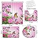 PREMIUM MATERIAL: The pink rose shower curtain set are made of polyester fabric, which is comfy, non-toxic, waterproof and durable. And floral non-slip bath mat and U type rug are made of high-quality flannel. Skid-resistant backing, durable and keeps the bath rug in place, helping you to enjoy pleasant bath time.