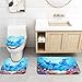 SIZE INFORMATION: Blue ocean shower curtain 69" W x 70" H; toilet lid cover: 14.6" W x 16.5" L; U shape rug: 15.7" W x 17.7" L; Bath Mat: 15.7" W x 23.6" L. This size is suitable for most home bathrooms, Please confirm whether the size is suitable for you.