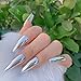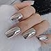 Unique Design:Metallic High Shine Sliver Fake Nail,perfect for daily wear, wedding prom performance.Enhance the charm of fingernail tips!