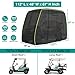✅【4 passenger golf cart cover size】:112'' L x 48'' W x 66'' H, suitable for most 4 passenger golf carts with extended roof up to 80", 2 rear seats, armrests and footrest. such as Yamaha, Club Car, EZGO.