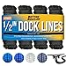 RELIABLE & STRONG BOAT LINES: Capable of absorbing shock loads. With a mooring tie off, knots hold and are easy to unknot. Ideal dock lines for boats 1/2 inch boat dock supplies or accessories for camping & moving. Available in 3/8 and fender lines.