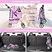 Pink and black Mommy & Me baby doll stroller has an adjustble handle that can be moved so the dolls can face your child or face the street. The doll stroller for toddlers is the perfect buggy for your little princess baby dolls. Cute stroller toy set with a foldable bassinet for lightweight travel