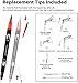 ♥CONVENIENT DUAL TIPS - Dual marker pens are designed with fine tip and brush tip. 0.4mm fine tip to do outlining and further detail with thin lines, flexible brush tip to do larger areas work like coloring, calligraphy. You could easily switch the lines as you need with the dual tips.
