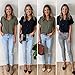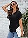 Feature:V neck t shirt for women, short sleeve, button down shirts, cuffed sleeve blouses with pockets, loose fitted, solid color, casual pullover top.