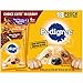 Contains (24) 3.5 ounce pouches of Pedigree choice cuts in gravy adult dog wet food: (6) filet mignon flavor, (6) grilled chicken flavor, (6) chicken casserole, and (6) beef noodle and vegetable flavor