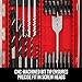 PORTABLE: Includes a tough jobsite case for secure storage, easy access, organizing and portability. The set includes removable components so you can take the range of bits wherever you need them for carry along convenience