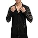 Features: This sexy clubwear shirts features button down closure, round curved shirttail hem, and black adjustable cuffs with button and classic lapel collar. Stylish and cool sheer shirt is easy to match with jeans,casual pants, and can be worn outside with a top as base layer or worn as a undershirt paired with a coat