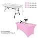 【Thoughtful Design】: stretch spandex material and pockets for legs are designed for keeping the tablecloth securely in place to fit your table better and make a flat & professional look so that your table cover won't slip around or billow with wind. It works better and more beautiful than traditional tablecloths. These table covers are stain resistant, wrinkle resistant and fit for any events. They protect your tables from dust and scratches and they’ll adding colors to your events.