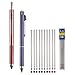 Mechanical pencil set: contains 4 pieces 2.0 mm HB mechanical pencils (black and blue); 2 tube of black lead refills, 2 tube of colored lead refills (Refill: 12 pieces per tube)