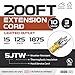 REINFORCED BLADES - Protect prongs from bending or cracking for extra durability. Perfect for use at home or in an industrial setting. 12 GAUGE HEAVY DUTY 3-wire grounded plug, 200 foot extra long cord, 15 amp, 125 volts, 1875 watt, 5-15P/R, UL Listed. Temperature Range: -40°F to +140°F