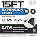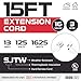 UL LISTED: This green 15-foot outdoor extension cord 2 pack is UL certified and equipped with 3 wires, making it a reliable and safe option for various applications. With a 13 amp, 125 volt, and 1625 watt capacity, this 15 ft outdoor extension cord is suitable for a wide range of power needs.