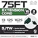 UL LISTED: This green 75-foot outdoor extension cord 2 pack is UL certified and equipped with 3 wires, making it a reliable and safe option for various applications. With a 13 amp, 125 volt, and 1625 watt capacity, this 75 ft outdoor extension cord is suitable for a wide range of power needs.