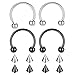 💕HORSESHOE SEPTUM RINGS:One Order You can Get 4 Pcs Horseshoe Septum Rings (2 Pcs Sliver and 2 Pcs Black) and 8 Pcs Extra Balls & Spikes, Internally Threaded Design, Make It More Easier and Safer Insertion and Removal of Jewelry, Without Any Damageing Body, Super Comfortable to Wear.