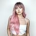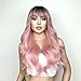 ♥ Pink Wig Material: Made of high-quality heat resistant synthetic unscented fibers with less shine, which is very soft silky, and not easy to shed, suitable for daily wearing. This wavy wig is a smooth exquisite design, allowing you to easily trim or weave various hairstyles and can be brushed without being tangled
