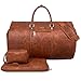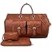 WATERPROOF SHOES POUCH - This garment duffel bag work perfect as a 56L duffel bag/travel weekender bag after assembled. The left side pocket of this leather garment bag is a waterproof PVC lined shoes pouch can hold up to 2 pairs shoes, wet/dirty clothes, wash bags or other things you want to store separately, keep other things in weekend bag clean and tidy. The right side pocket is designed for passport, keys and some other small items. Extra front pocket for quick access.
