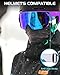 【HELMET COMPATIBLE & ADJUSTABLE STRAP】The elastic strap ensures a large range to adjust the ski goggles for better helmet compatibility and different sizes of heads of adults, youth, women, and men. The silicone anti-slip design inside the strap keeps the ski goggles in place effectively once you put it on.