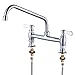 [21" Height Wall Mount] - This faucet mounts to the wall using a pair of NPT1/2" female inlets. Those inlets can adjust from 7 3/4" to 8 1/4".Total height 21 inches from wall mount flange to the top. And add on faucet can reach 10" from the wall. Suitable for 1, 2 or 3 compartment professional grade commercial kitchen sink use.