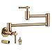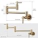 【Dual Handles Design】: This gold pot filler is equipped with dual joints with 360 degree rotation, which is more convenient for controlling water flow rate or turning the water off at either the wall or spout with easy one-handed operation. The flow rate is 2.82gpm, great to enjoy your cooking. Please turn off both switches when not in use. Notice: this folding faucet is only for cold water use.