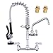 [Commercial Sink Faucet] - This wall mounted pre-rinse faucet with sprayer and add on faucet is perfect for rinsing excess food and sauces off of your dishes prior to running them through your commercial dish machine. Intended for janitorial and dishwashing use, this commercial kitchen faucet is ideal for dish rooms, schools, grocery stores, kitchens, and more.