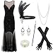 Package include : 1 x 1920S Sequin Tassels Flapper Dress , 1 x Long Satin Gloves; 1 x Pearls Bracelet ; 1 x Black Cigarette Holder ; 2 x Earrings ; 1 X Headband ; 1 x Feather Scarf ; 1 x Pearl Brooch ; 1 x Pearl Open Ring.