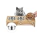 Raised cat dish - The raised dog bowl feeding use environmentally friendly materials (100% bamboo wood food grade 304 stainless steel material ),which is reusable , The wooden cat food bowl holder have 2 height adjustment design &3 cat bowls to eat or drink water