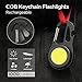 🌟MULTI-FUNCTIONAL PORTABLE DESIGN: The small keychain flashlight have 3 Lighting Modes, with SOS function, and square design. The lep flashlight top is a climbing buckle design can be hung in any position you want to, and with a bottle opener function to help you open a variety of metal lids in the field, the back is 180 ° rotatable bracket, the COB light put on the ground can also be used steadily.
