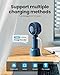 Rechargeable Battery: The personal fan is powered by an upgraded rechargeable battery that keeps it well charged and has a longer battery life, it comes with a charging cable, you can charge it from a regular outlet, computer, or any other device via a USB port.