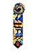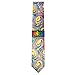 Men's self-tie neck tie featuring art deco graphics of dark blue, light blue, yellow, orange, tan, and black.